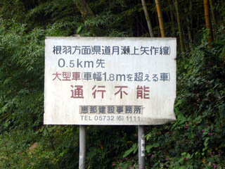 その表示はハッタリではなく、まもなく道幅が狭くなった。忘れた頃に退避場所が現れるが、それも数メートルの区間しか無い。