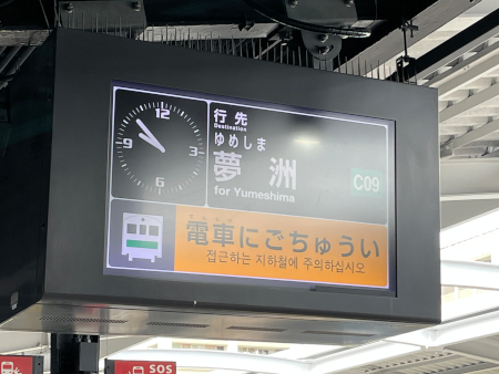 地下鉄車内はかなり混んでいて、車両の揺れに足を踏ん張って耐えているとようやく夢洲駅のひとつ手前のコスモスクエア駅を出発しました